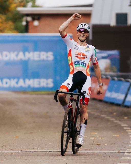 Zijn broer Yordi Corsus wint de beloftencross met een lange solo.