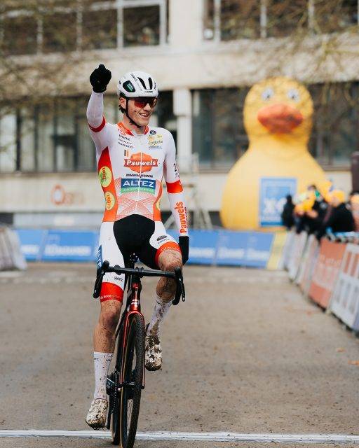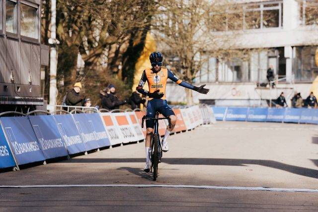 Giel Lejeune wint de juniorencross in Brussel.